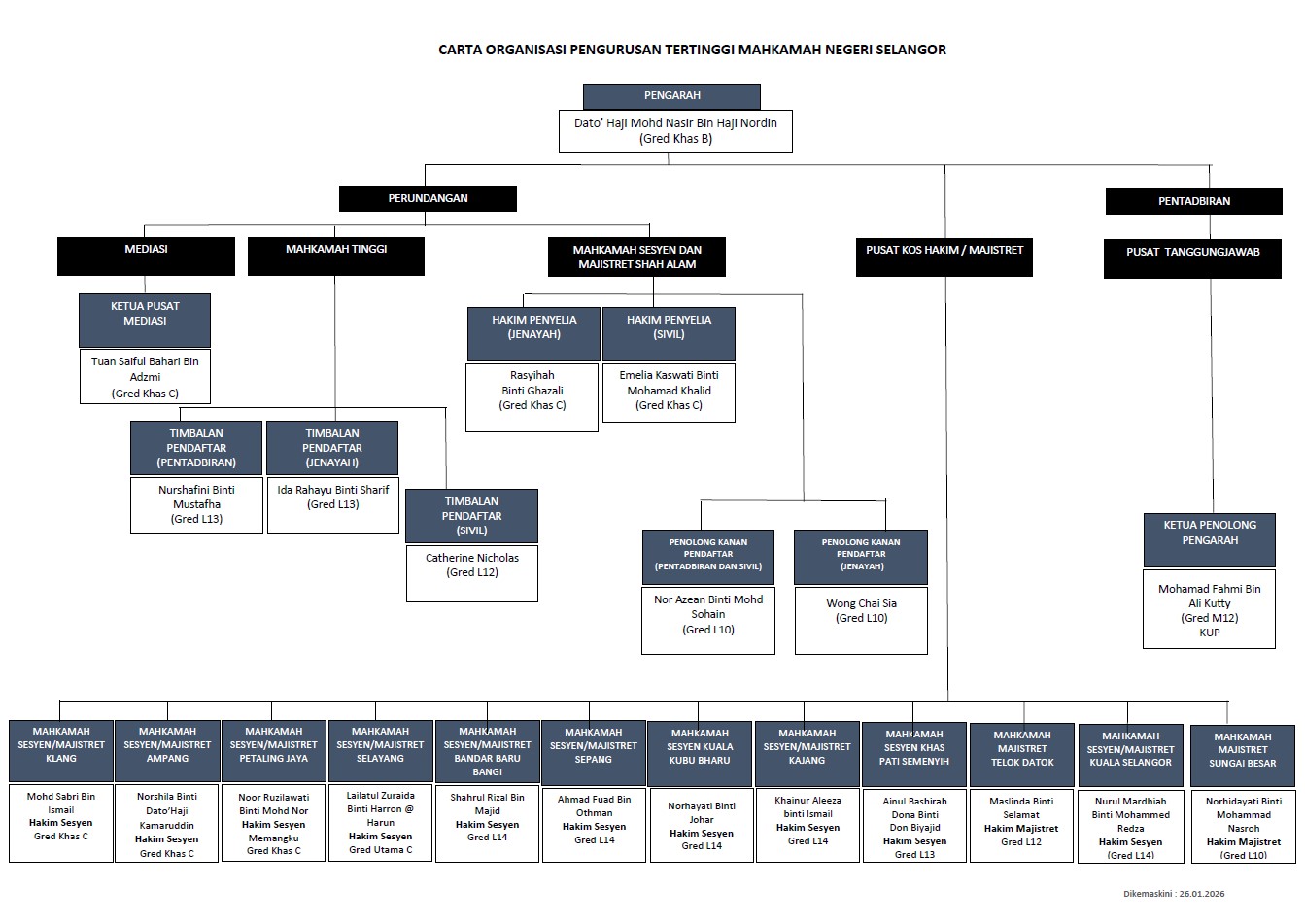 Carta Organisasi Pengurusan Tertinggi Mahkamah Selangor
